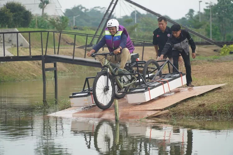 Aji Nara Kusuma melanjutkan, sepeda dirancang untuk menghadapi medan darat dan air secara bersamaan, yang dapat dengan mudah beralih dari jalur darat ke jalur perairan. Kedua, UG AMEB ditenagai dengan motor dynamo listrik yang handal, menawarkan kecepatan dan daya tahan untuk petualangan yang lancar dan menyenangkan.