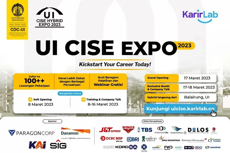 RADARDEPOK.COM – Universitas Indonesia (UI) melalui Career Development Center (CDC) UI kembali mengadakan UI Career, Internship, Scholarship and Entrepreneurship Expo (UI CISE Expo) yang ke-35 bekerja sama dengan KarirLab.
