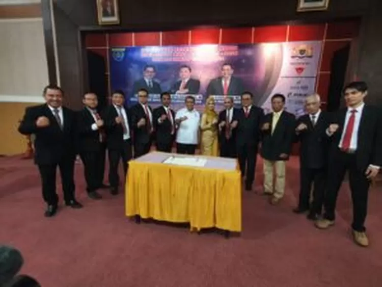 INSERT : Ketua KADIN Jawa Barat, Cucu Sutara, dewan kehormatan dan pengurus, Ketua KADIN Kota Depok, Miftah Sunandar dan Pengurus KADIN Kota Depok periode 2021-2026 usai penandatangan SK dalam pelantikan Pengurus KADIN Kota Depok periode 2021-2026 di Hotel Bumi Wiyata, Jalan Raya Margonda, Kecamatan Beji, Kota Depok, Jumat (26/08).