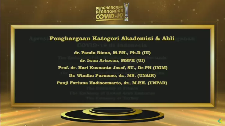 Untuk kategori Akademisi Pendukung Pemerintah dalam Penanganan Pandemi Terbaik diberikan kepada dua dosen dari Fakultas Kesehatan Masyarakat (FKM) UI, yaitu Pandu Riono, yang dikenal sebagai Juru Wabah dan Iwan Ariawan.